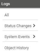 Open a list with log information about specific system event types. Hover over System Events to choose from the following event types: