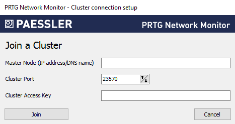 Click Join a Cluster to add this installation to a cluster that already has a master node. The current PRTG core server is then a failover node.