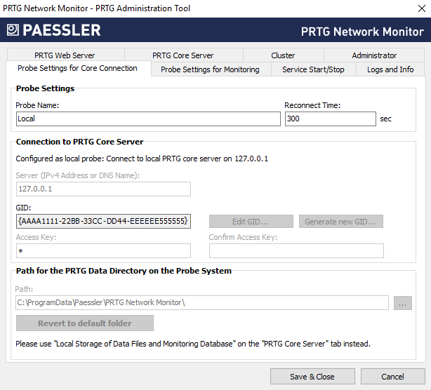 PRTG Manual: PRTG Administration Tool on PRTG Core Server Systems