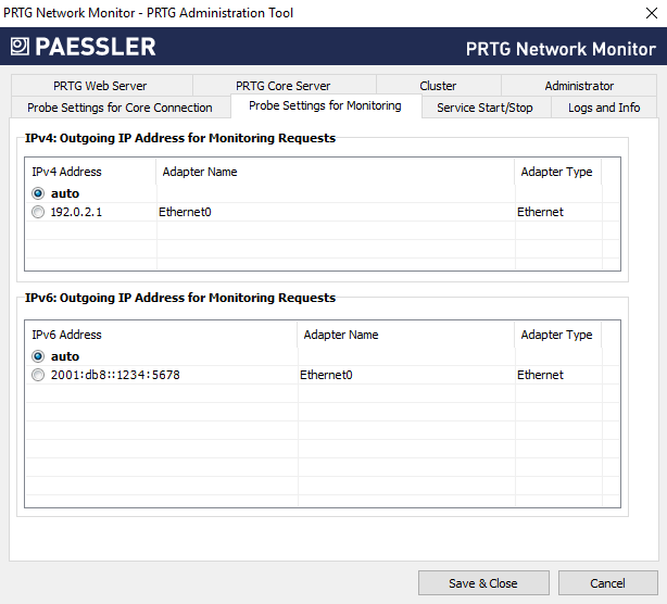 If more than one IP is available on the system, you can specify the IP address that PRTG uses for the outgoing monitoring requests of certain sensors.