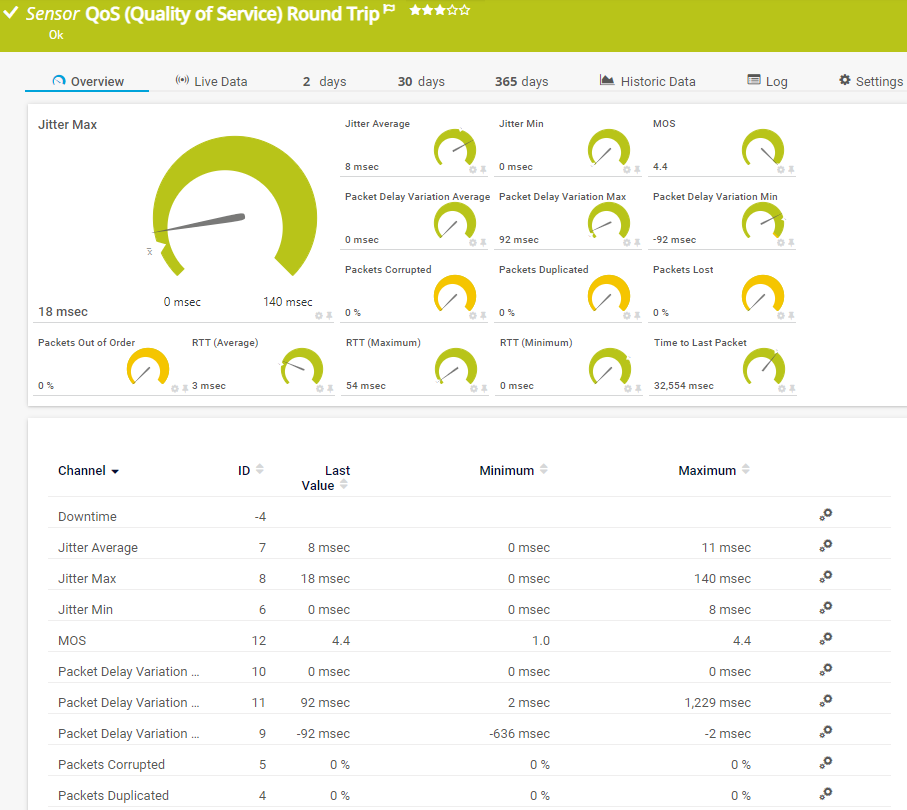 PRTG Manual: QoS (Quality of Service) Round Trip Sensor