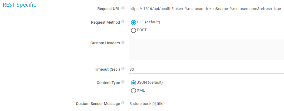 The REST Custom v2 sensor queries a JavaScript Object Notation (JSON) or Extensible Markup Language (XML) Representational State Transfer (REST) application programming interface (API) endpoint and maps the JSON or XML result to sensor values.
