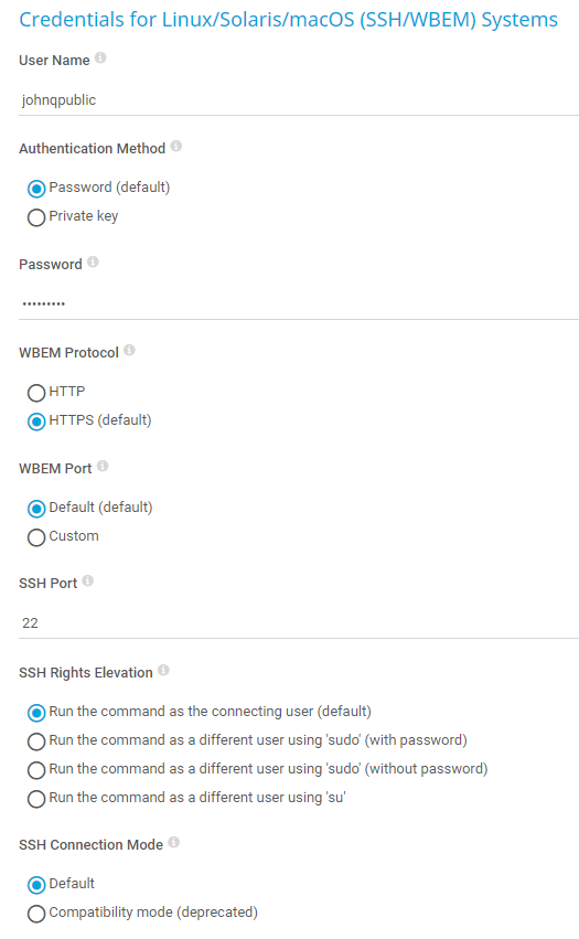 Credentials for Linux/Solaris/macOS (SSH/WBEM) Systems